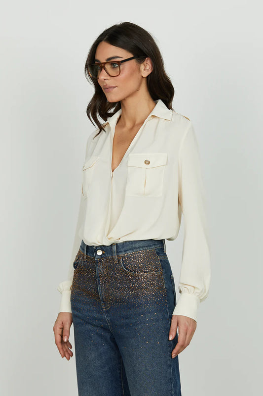 Camicia JUWELL manica lunga con tasche con strass più borchie più patte RELISH