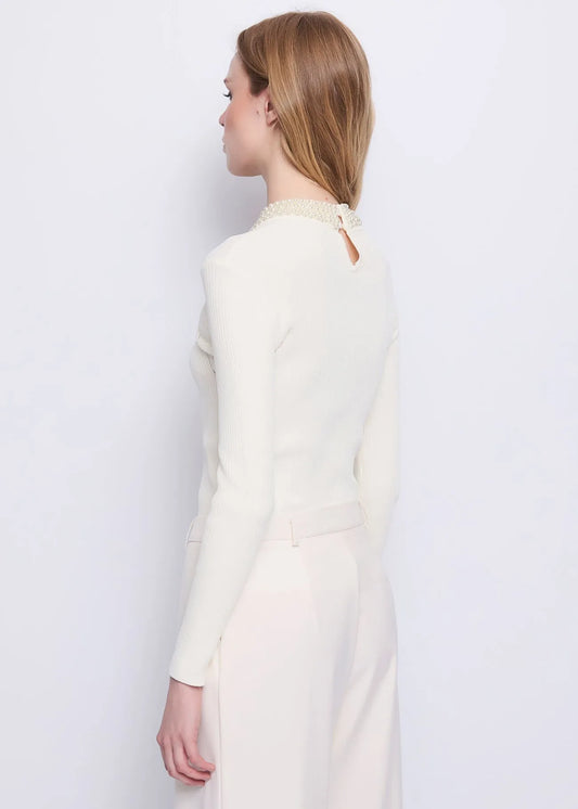 Maglia bianca da donna in filato con perle GAUDI 521FD53036_3213