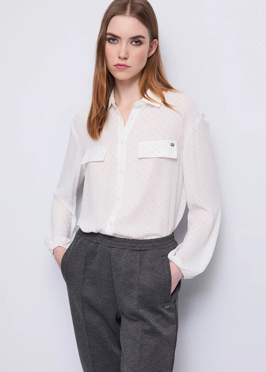 Camicia bianca da donna con strass e taschini GAUDI COLORE BIANCO