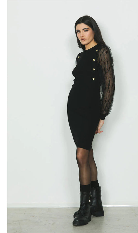 Maglia nera a costine con tulle - art. 521DD53004- Denny Rose Autunno Inverno 2025/26