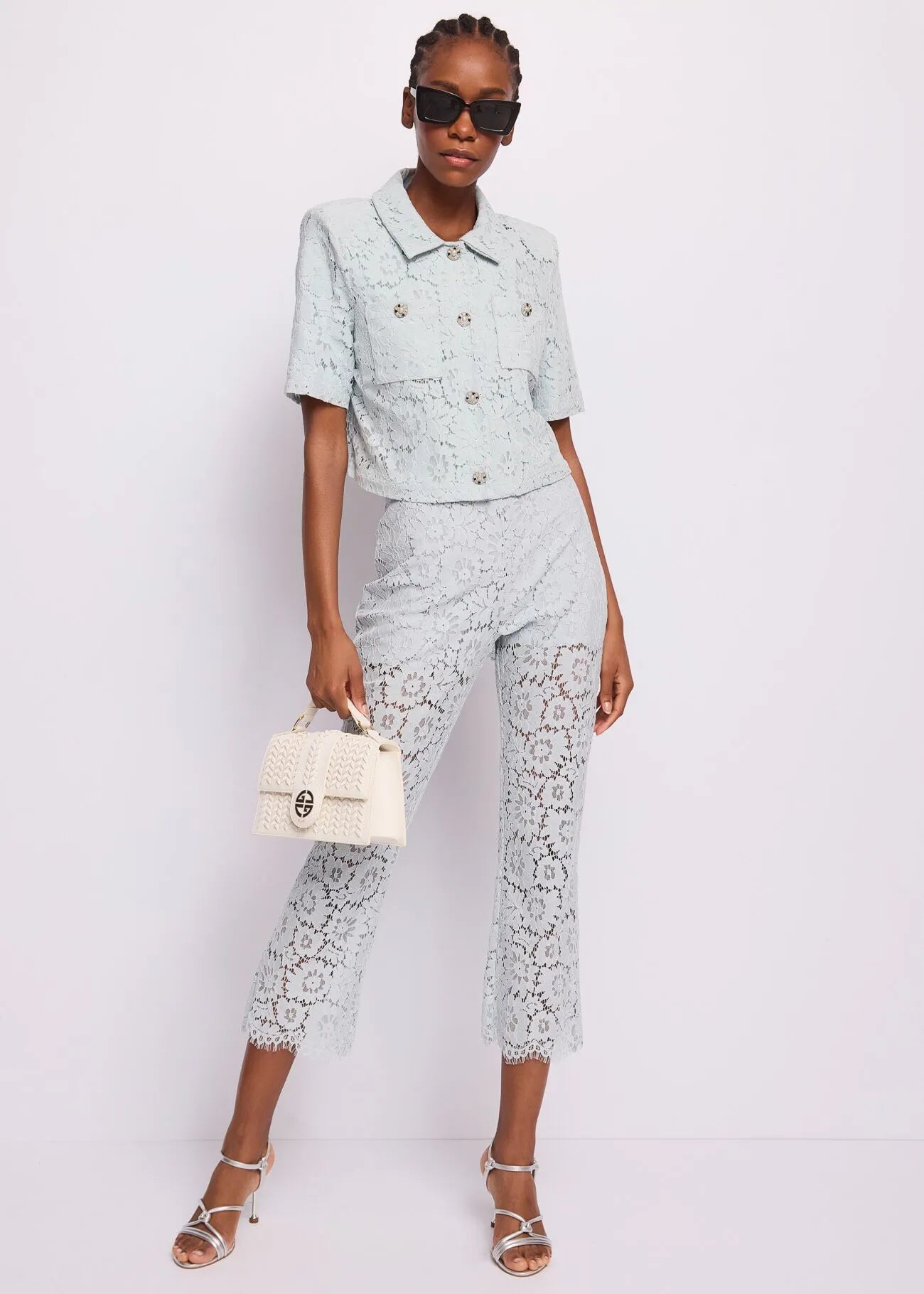 Scegli la giacca in pizzo macramè di misto cotone con bottoni gioiello e maniche corte. Per un look che combina romanticismo e freschezza.