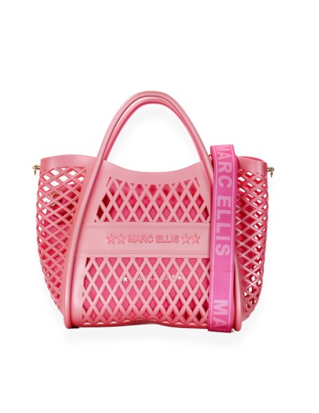 Borsa a mano in gomma a rete con logo in rilievo "Marc Ellis" sul davanti. Doppio manico in gomma, pochette interna removibile in tessuto con logo e tracolla removibile in tessuto con logo.