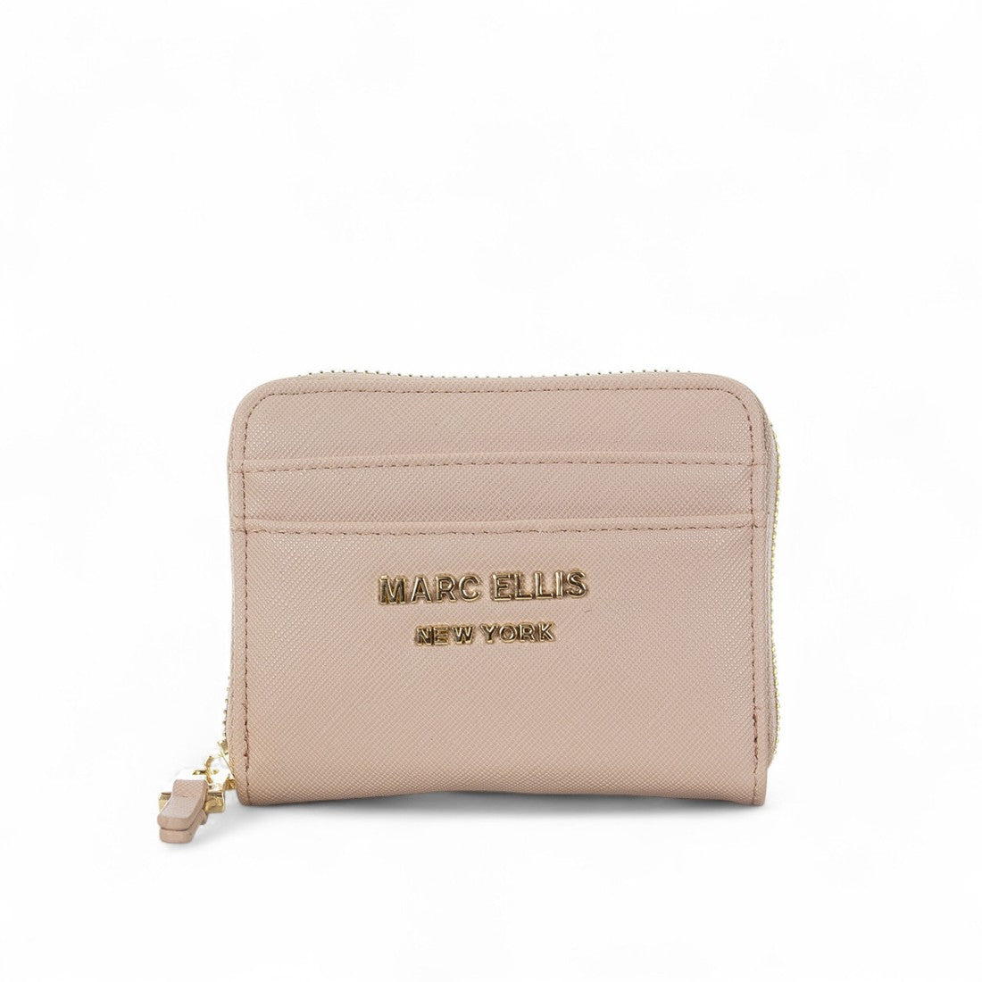 Portafoglio Marc Ellis modello Saba MF, realizzato in ecopelle di alta qualità nella raffinata tonalità nude, perfetta per un look elegante e femminile. Il design moderno è impreziosito dal logo M in metallo color oro applicato sul fronte, che conferisce un tocco distintivo e sofisticato.