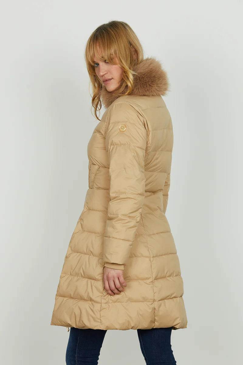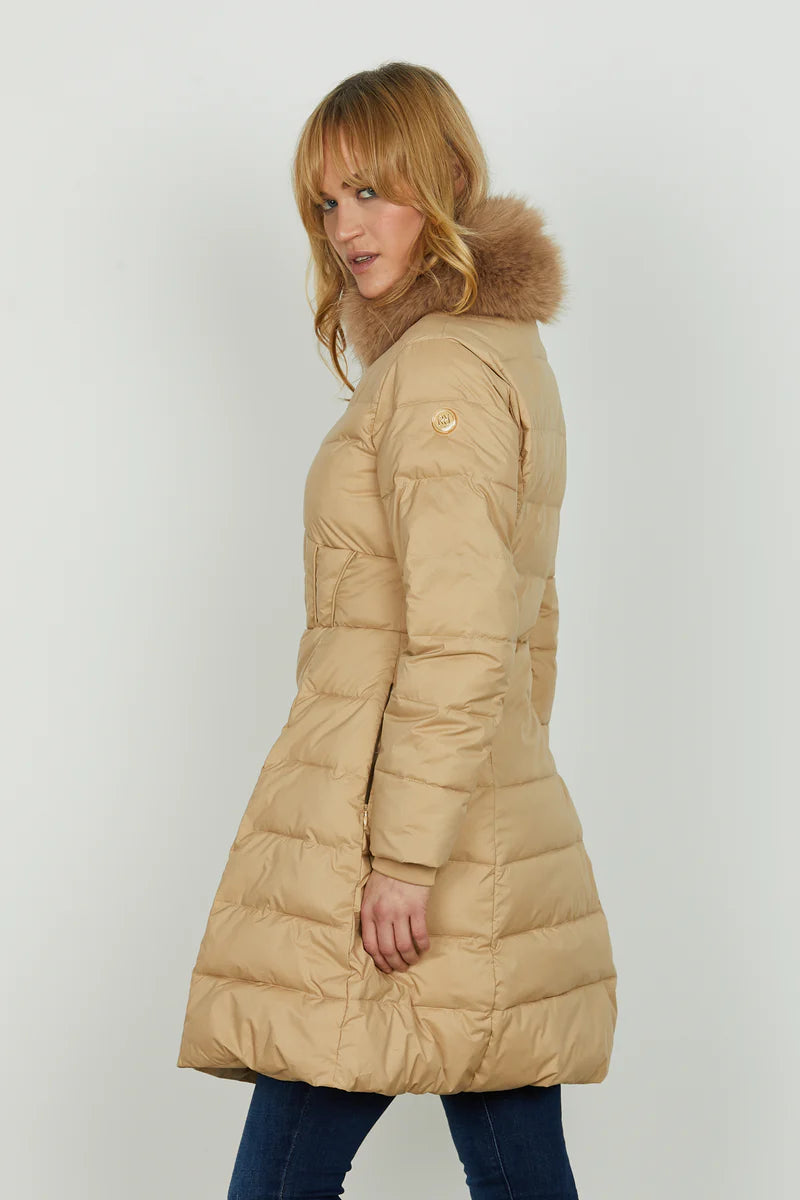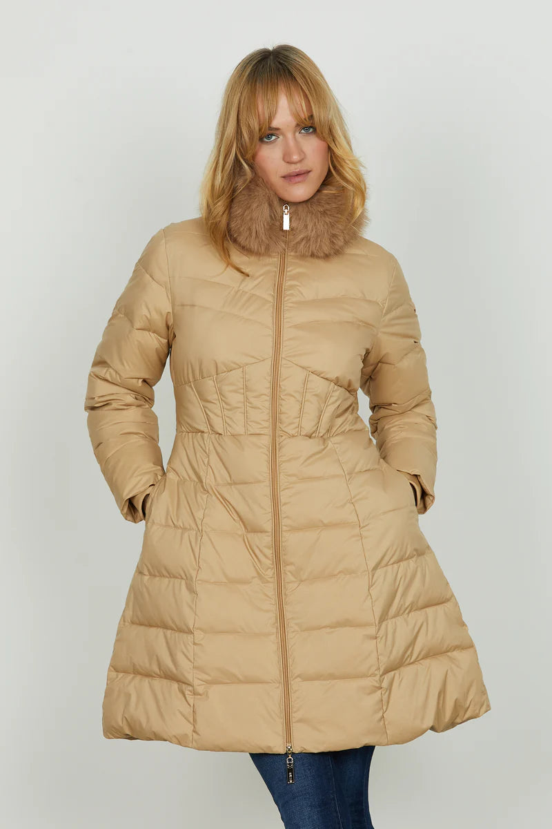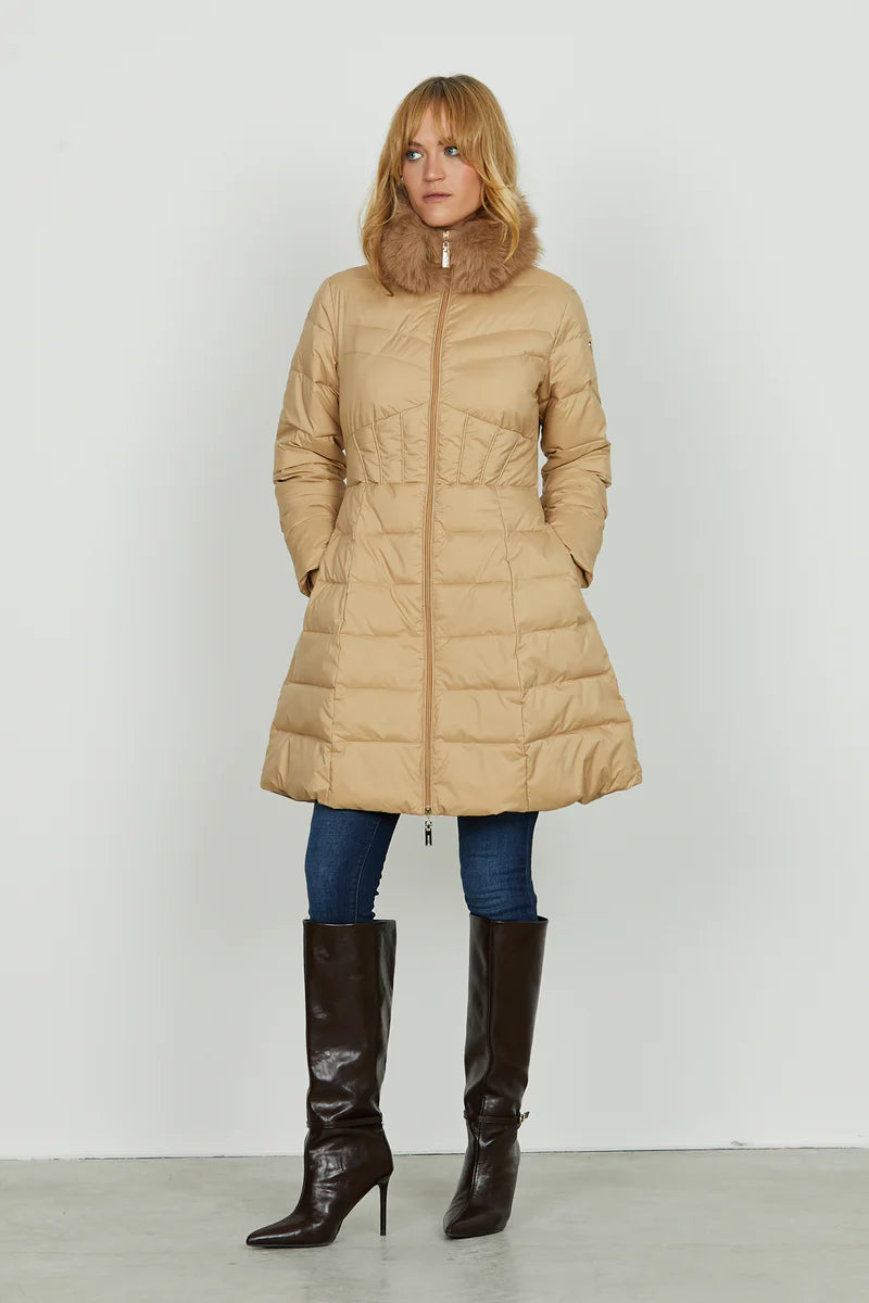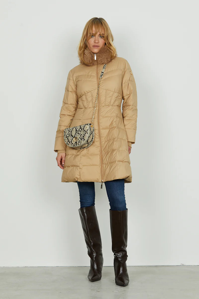 Piumino BALTORAM lungo manica lunga con polsi costina più collo ecopelle staccabile effetto glitter RELISH