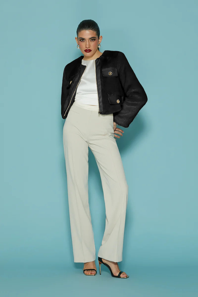 Ecopelliccia AGOSTYN manica lunga con patte ecopelle più bott.gioiello più zip