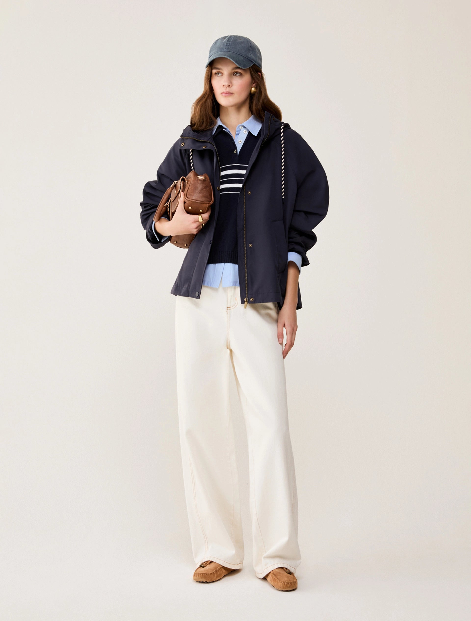 - Collo alto con cappuccio e coulisse con cordoncino ritorto