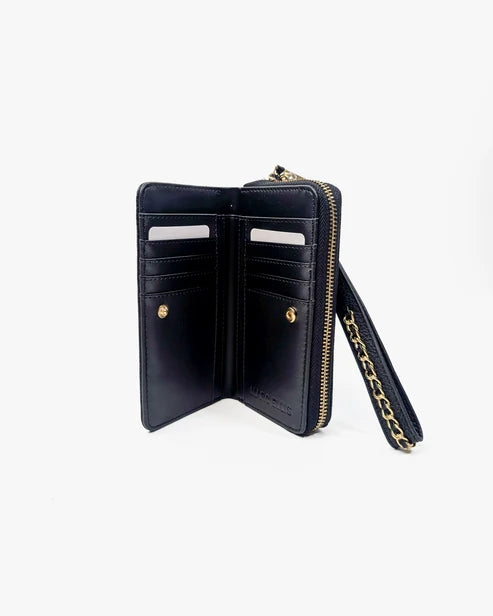 Portafoglio Marc Ellis progettato con attenzione ai dettagli e alla funzionalità. La chiusura magnetica assicura sicurezza e praticità d'uso quotidiano, mentre il logo in metallo frontale sottolinea l'identità del brand con eleganza. La manetta ne facilita l'utilizzo anche come pochette. L'interno è intelligentemente organizzato con ampi spazi dedicati a banconote, carte di credito e documenti, garantendo ordine e accessibilità. La tasca portamonete centrale consente di separare facilmente le monete dagli altri effetti personali. Un accessorio versatile e sofisticato, ideale per chi ricerca qualità costruttiva e design essenziale.