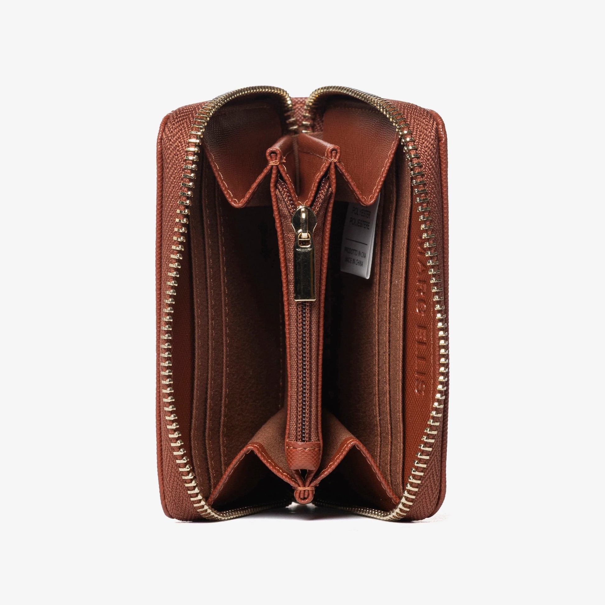apertura con zip dorata all'interno vari scomparti per carte e monete.